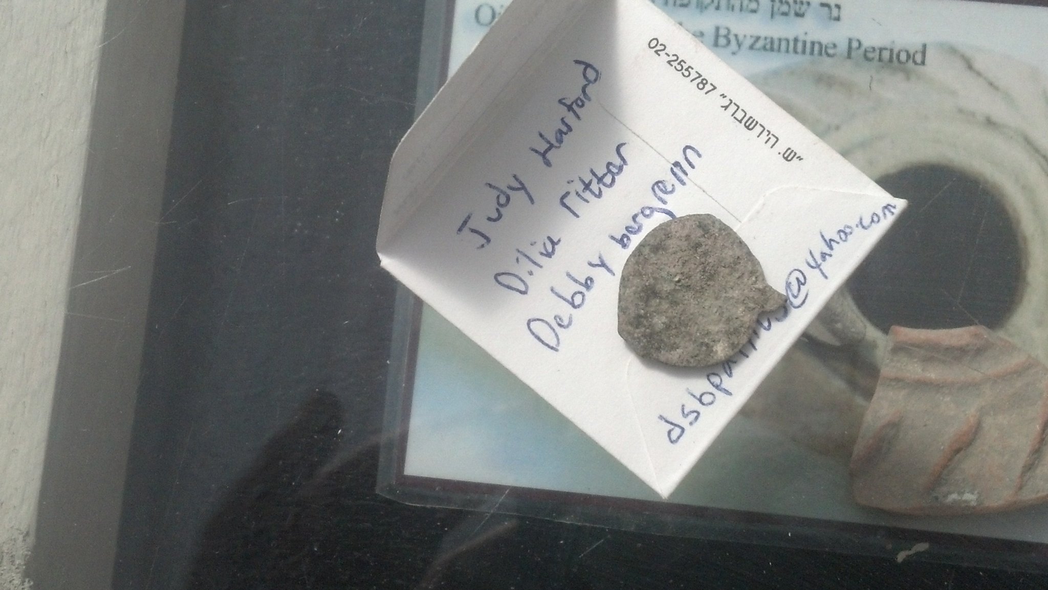 We found lots of pottery pieces, mosaics and iron, but our big find was a coin! It’s a fairly rare find, so this was a big deal! Here’s our find: