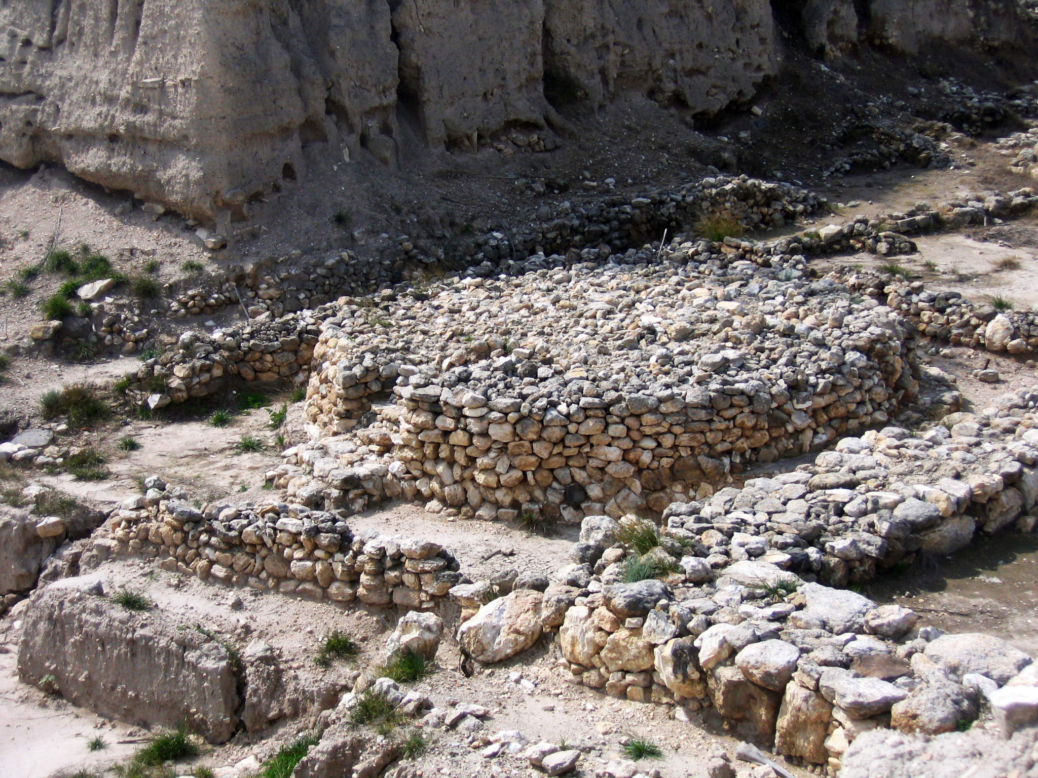 Megiddo is a tel (a stack of civiliations), not too far east of Mt Carmel. Megiddo is located at the crossroads of the north-south and east-west trade routes, so was a very popular place for civilizations to arise over the many years. In addition, pagan worship often took place there. Here is a re-constructed sacrificial mound at Megiddo.