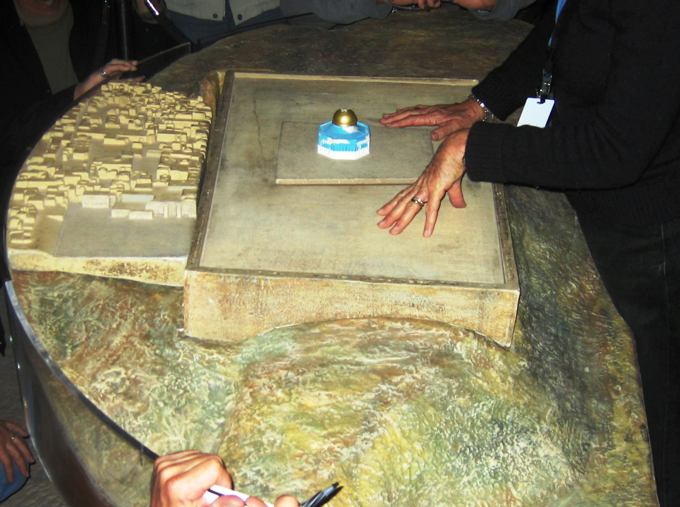 As imposing and “impressive” as it may seem, it is nothing compared to what the Temple was. To give some perspective, here are two pictures from a previous tour illustrating the difference between the two.