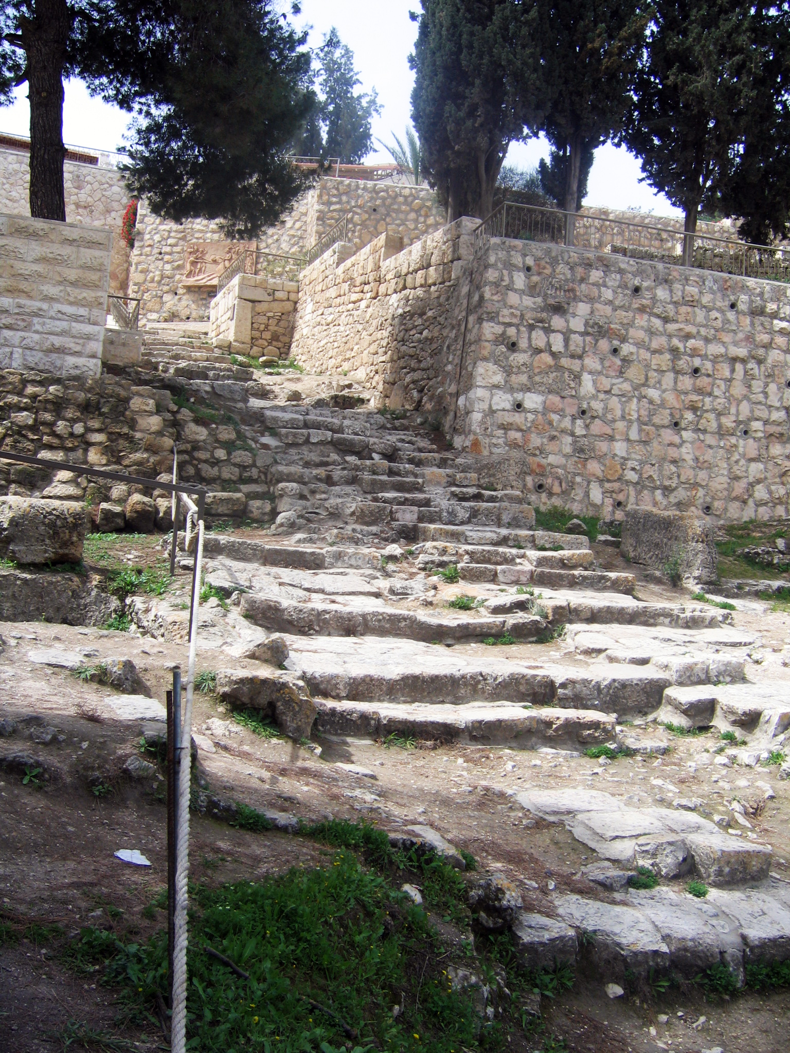 Early the next morning, Jesus was taken to appear at a third religious (and also illegal) trial before the Sanhedrin. (Illegal for several reasons…it was a feast day – Passover, the Sanhedrin was not polled as required by law, Jesus had no one to represent Him, and the law required a day of fasting between a sentence and an execution.) Imagine Jesus being led down these steps from Caiaphas’ house to the Council Chamber of the Sanhedrin.