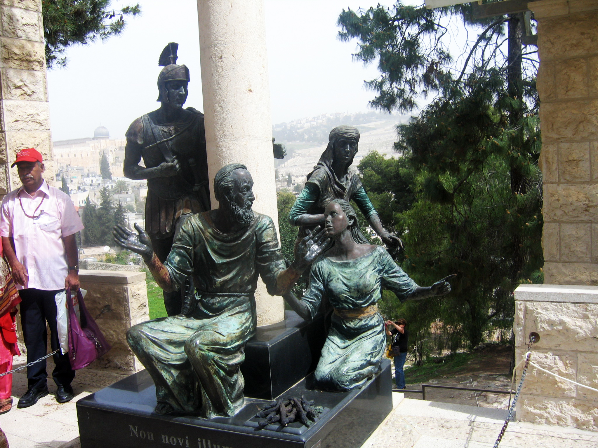Meanwhile, outside Peter was denying Jesus…perhaps in this courtyard. The statue commemorates that event.