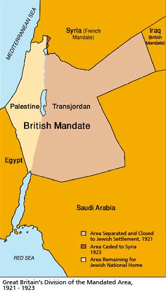 The British Mandate allocated all of Israel (including the modern-day Gaza Strip, Golan Heights and West Bank) and Jordan as proposed Jewish homeland.