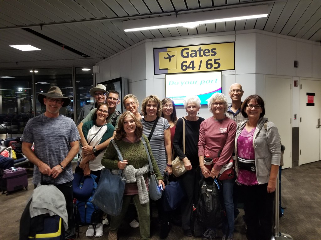 Thirty-one very excited travelers boarded flights this morning to begin our journey of a lifetime to Israel together!  Unfortunately, our group has to travel on two separate flights, but we were able to connect briefly in the Phoenix airport prior to our first leg of the journey.