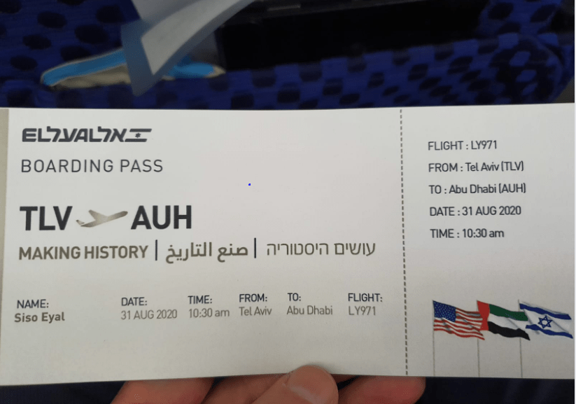 The first ever commercial flight from Tel Aviv Israel to Abu Dhabi UAE is on its way, and here is another historic first: