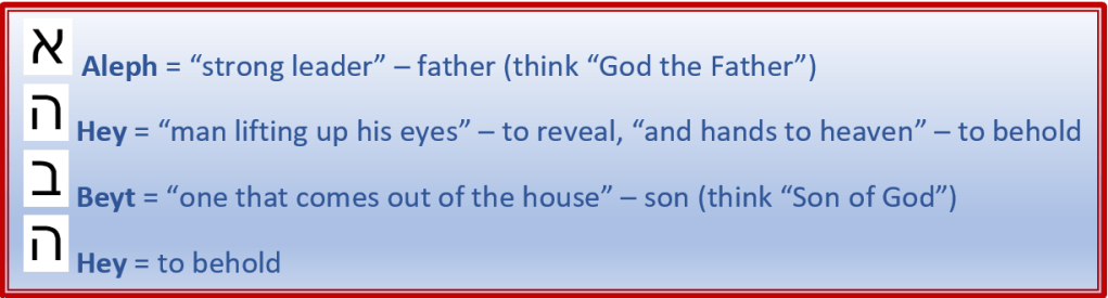 Loosely translated, then, we might say: “God the Father reveals Himself through His Son of whom we are to behold.” I won’t be dogmatic about the technical aspects of that translation, but the Hebrew word ahavah does lend itself to reflect the Father who sent His Son for the whole world to behold!
