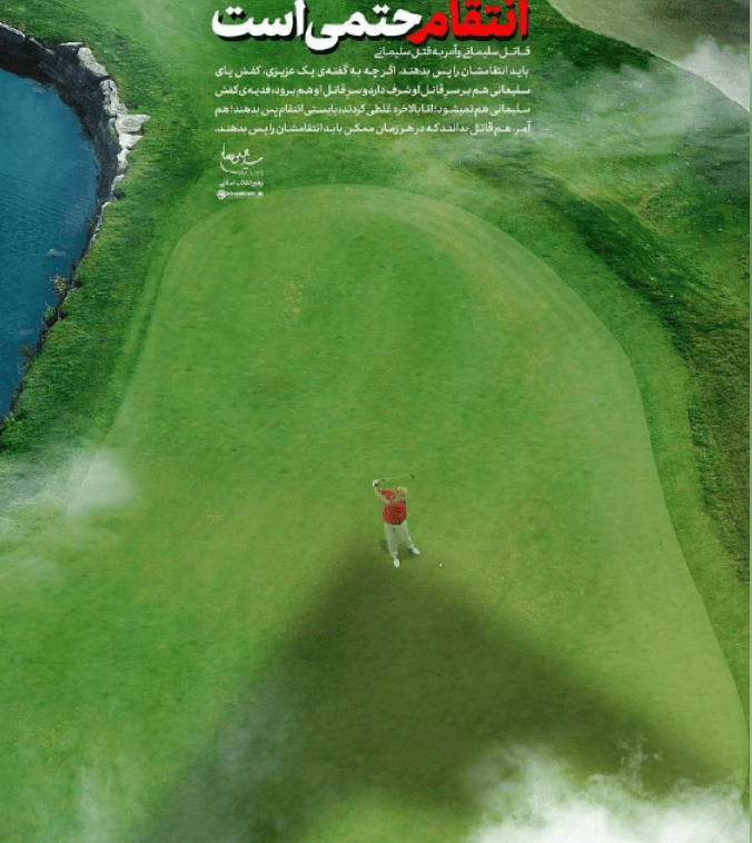 Ominously, the Tweet shows an overhead view of Trump playing golf, with the shadow of a drown about to overtake the President.
