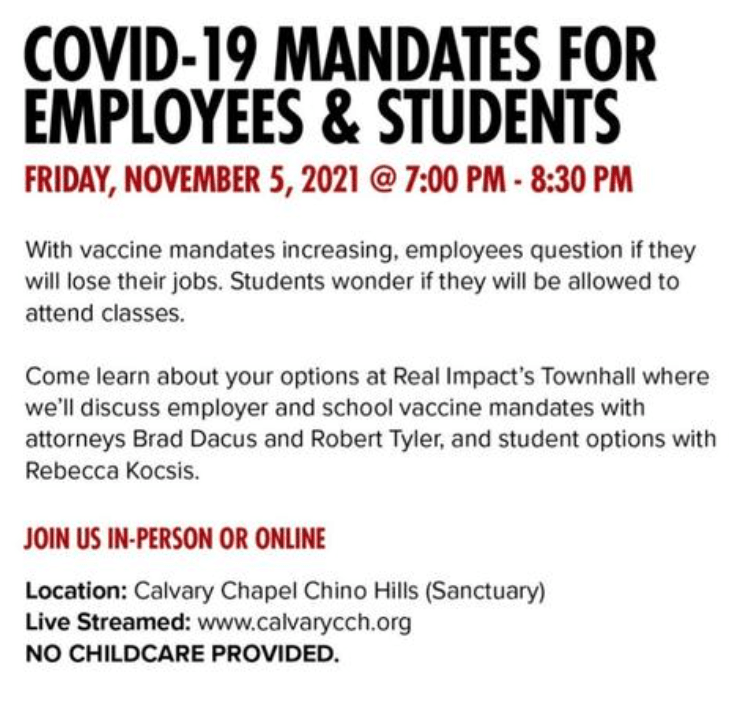 Hi everyone! If your job is on the line or your students wonder if they will be allowed in class due to vaccine mandates…or if you simply want valuable information regarding the mandate and your rights…tune into this meeting at 7:00pm AZ and Pacific time (10:00pm Eastern time) on Friday night.