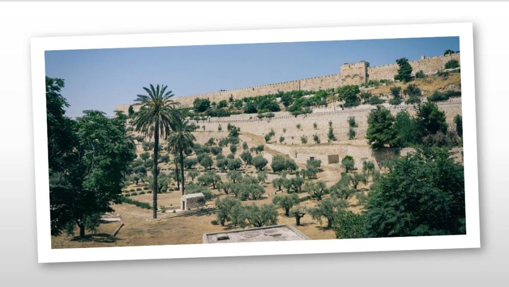 (Hint: Yes, that is the Eastern Gate of Temple Mount, and you are viewing this from the Mount of Olives. If you are looking for clues in Scripture, a brook ran through here in ancient times.)