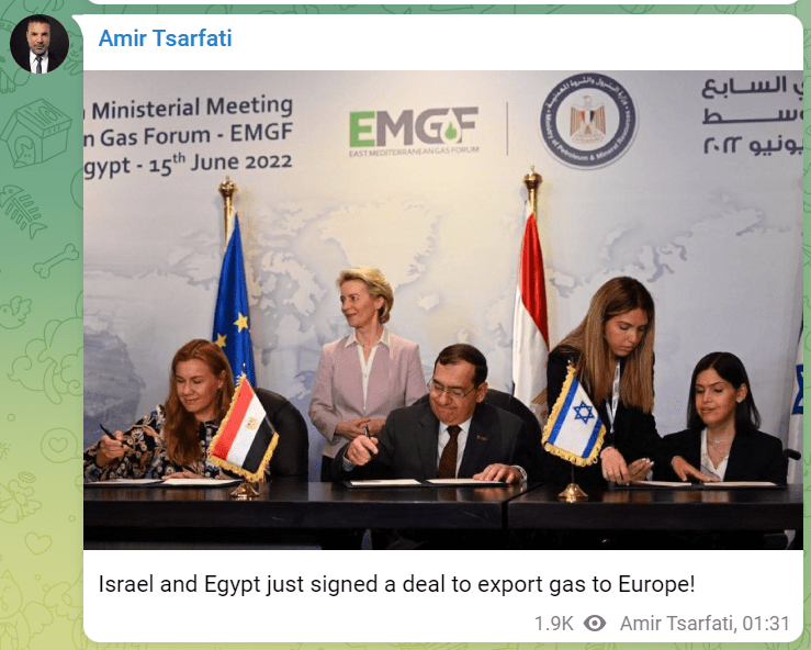 Enter Israel! The European Union (EU) is now negotiating with a new supplier of natural gas…and that is Israel! (See ‘Stay tuned’ for major announcement on energy.)