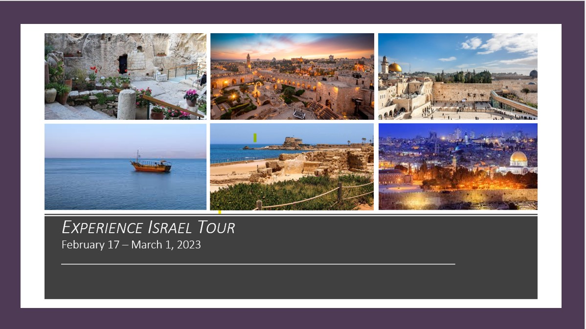 Today, 27 excited tour guests from 4 countries and 6 US states will board flights to meet up in Tel Aviv, Israel! Pastor John Kelley and I have the blessed privilege to host and to teach during our time together in the land of the Bible and we are very excited about this group of … Continue reading Today is the Day!