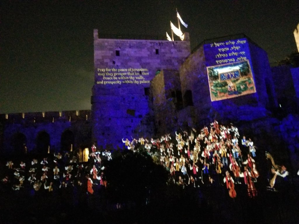 We ended our day with our first peek inside the Old City, as we attended a fantastic laser light show inside David’s citadel. Using the high walls and cavernous expanse of the citadel, the story of David was projected on to the walls, creating a gigantic “screen space.” It is a magnificent laser light display showing off Israeli imagination and technology. It is well worth the time (45 minutes) and expense (~$16).