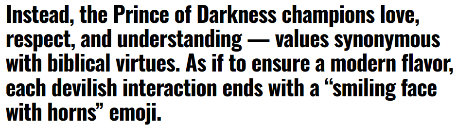 But wait…it gets worse! The “Chat with Jesus” app also has a setting allowing the user to chat with Satan as well! And what a deceptive light is cast: