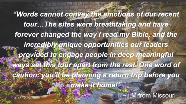 So, gather family and friends and consider joining us. As always, we limit the size of our tours to maximize value, so I invite you to review tour information by clicking the button above, or use the contact form below if you have questions. We are happy to provide whatever information is helpful to you! Also, we are able to assist in booking flights to Tel Aviv, where we will begin our tour.