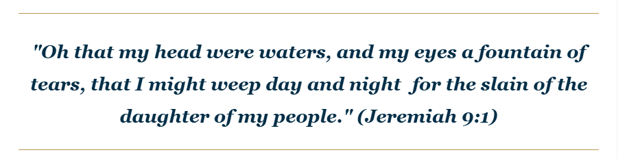 But let’s start with the sobering words of Jeremiah 9:1 and Dr Erez Soref’s brief commentary before his interview with Aviva.
