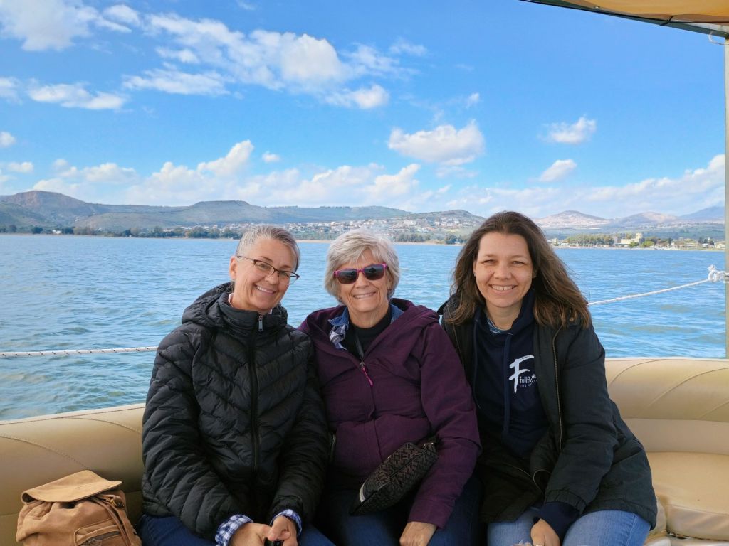 The Thursday morning dawn broke with cloudy skies, then we watched from our 7th floor balcony as a storm blew across the Sea of Galilee. Dark, nasty-looking clouds hovered over the Sea and the rain began to fall. I thought surely we would have to move to plan B, as plan A was to be outside. But, alas, the rain stopped, the skies began to turn blue, and we pushed forward with the day’s plans, all of which were kept under wraps in order to bless our team.