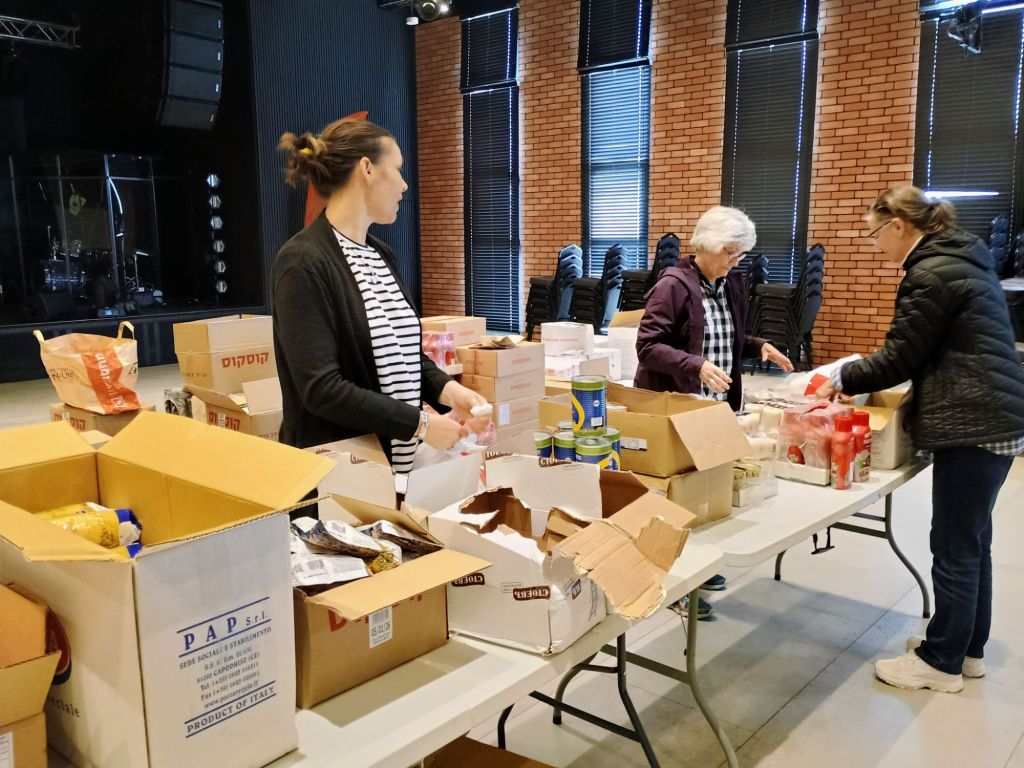 On Monday evening, we have the blessed privilege of helping to distribute those food bags to new Jewish immigrants. As Jews return to the land, it is incredibly difficult for them to get their feet under them. Beit Hallel provides not only food bags, but also clothing and other essentials. It is a very productive ministry.