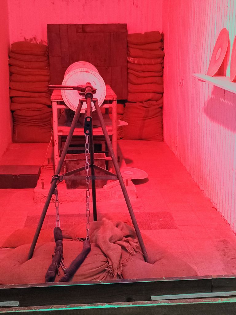 Yet, only the 45 people working in the factory and a handful of those helping to keep them hidden (such as the operator of the laundry room) knew about the factory! Many Ingenius innovations were included to filter air, tan their skin (since working everyday in the underground left one very pale), and a signal system to let them know when “giraffes” (British soldiers and others) were close by. It was also extremely dangerous, so there was no room for error, particularly in the underground gun range for testing, and the area designated to load ammunition with precise amounts of gun powder. An explosion of the factory would take out not only the 45 workers, but also the school where children played just above the factory!