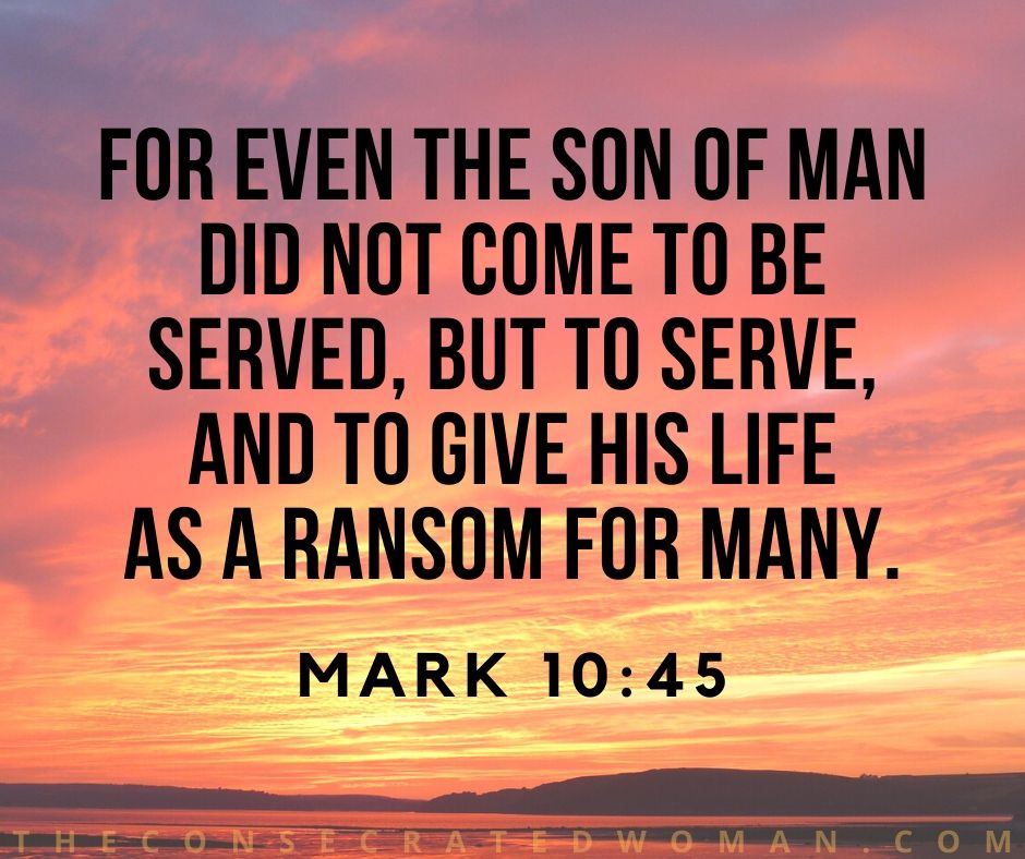 In flight, I was drawn to many passages of Scripture, but one verse caught my attention and I couldn’t shake it. Take a look at Mark 10:45. As I contemplated the servant heart of Jesus, our Lord, and the fact He gave His life a ransom for many, the words “serve” and “ransom” stuck out to me.