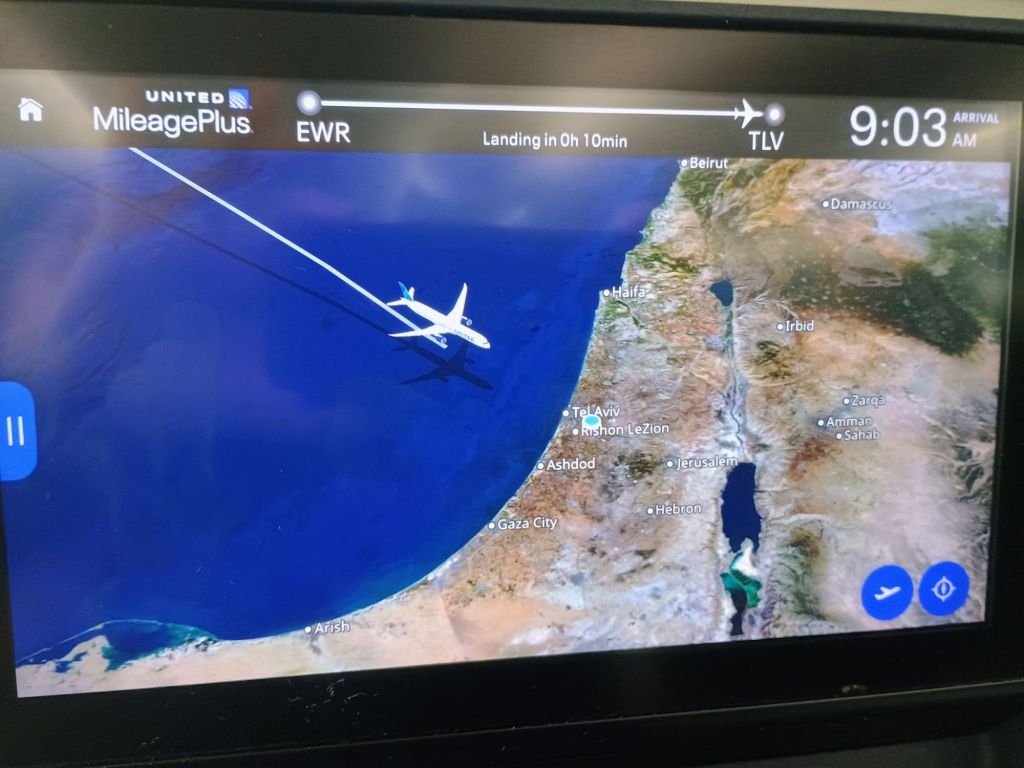 As mentioned before, I’m a travel nerd who likes to check in on the status of flights. It was time to get excited when Israel was not only in view, but only minutes away! I arrived on a flight with two of our Israel-loving tour guests, so we stopped for a quick “Welcome to Israel” photo!