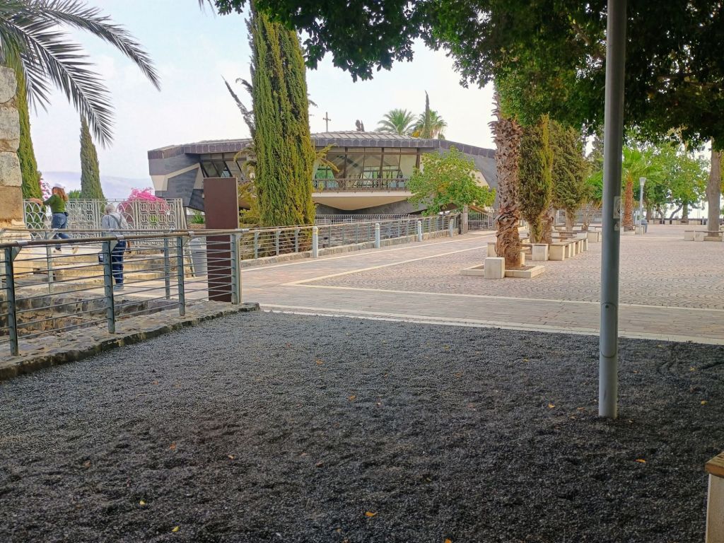 We viewed the rebuilt synagogue, understanding that the black basalt foundation below was from Jesus’ time, while the white walls rebuilt above it are from a few centuries later. Across from the synagogue was Peter’s house. The apostle’s family was host to Jesus when he was not in some other place ministering. Archaeologist believe the octagonal house unearthed beneath the modern structure is Peter’s house. Knowing that and a few other Bible facts reminds us that many of Jesus’ miracles took place right here in Capernaum.