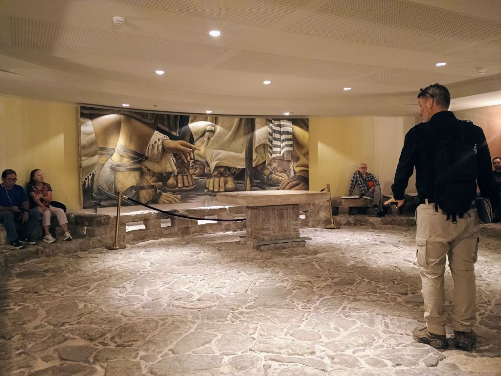 The new conference center and church at Magdala are absolutely gorgeous. The church features floor to ceiling windows looking out over the Sea of Galilee, and a boat built as the altar from which the priest (or visiting pastors) teaches. Side rooms meant for small gatherings to pray and/or praise the Lord are adorned with some of the most beautiful murals imaginable. (Unfortunately, a wedding or mass was taking place in the church, so we did not have access to it this time.)