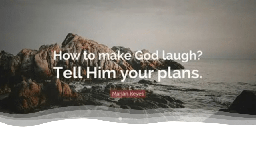 How foolish to think we are in control in God’s world! Yet it happens to us all! Just when we think we’re in control, God laughs!